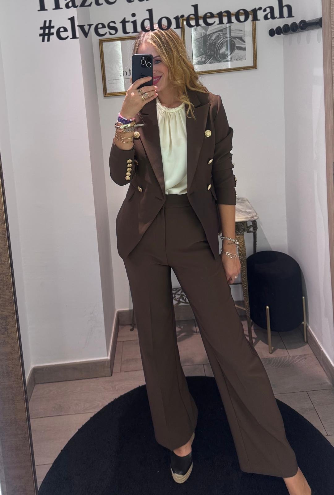 Ideal para combinar con nuestro pantalón de traje recto en marrón chocolate.